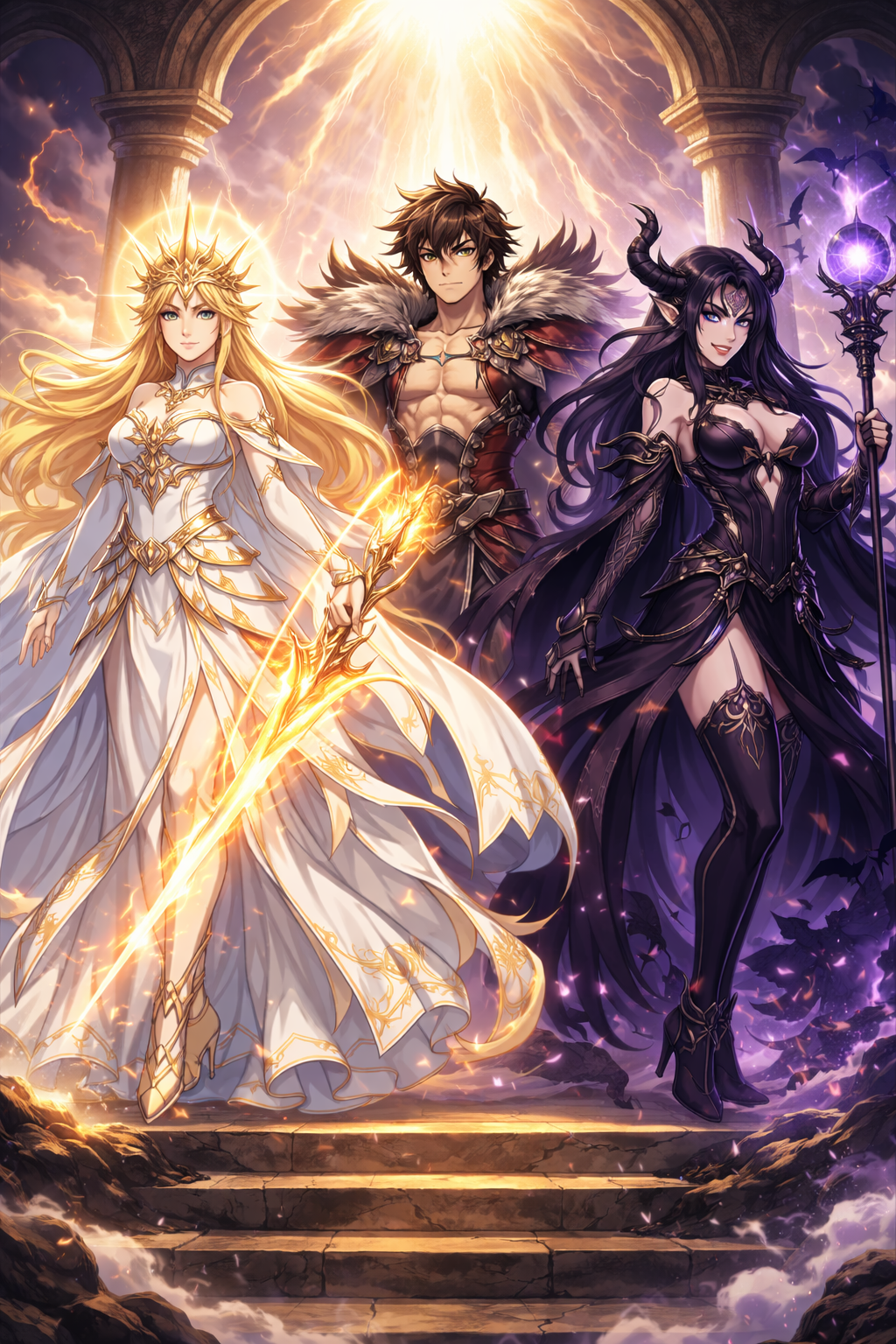 Epic atmosphere: Cinematic visuals and orchestrated music enhance the tension between light and darkness.